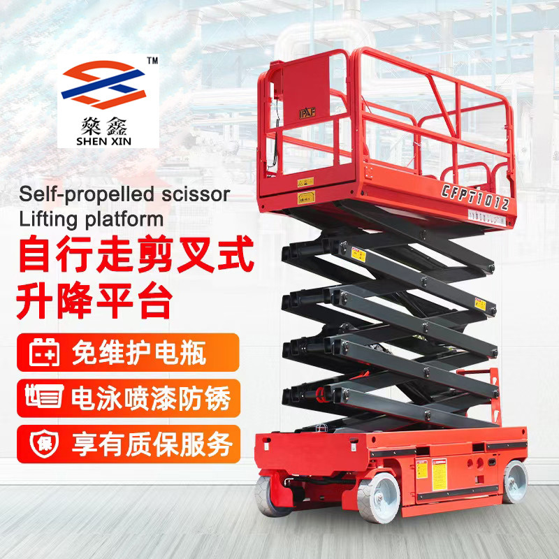 自行式升降平臺是一種多功能起重裝卸機械設備。起升高度從1米至20米不等,可根據個人要求訂做特殊規格的平臺。自行式升降平臺一般采用高強度合金材質,結構堅固,使升降機的偏轉與擺動極小。具有自動行走功能,可選三項電源控制和電瓶控制行走,能夠在不同工作狀態下,不需外接電源,手柄控制行走,速度可調式,移動靈活、操作方便、升降自如,只需一人便可完成前進、后退、轉向、快、慢速行走和上下等動作,省工、省力。特別適用于車站、碼頭、機場、電廠、體育場館、大型企業等較大范圍的高空作業。