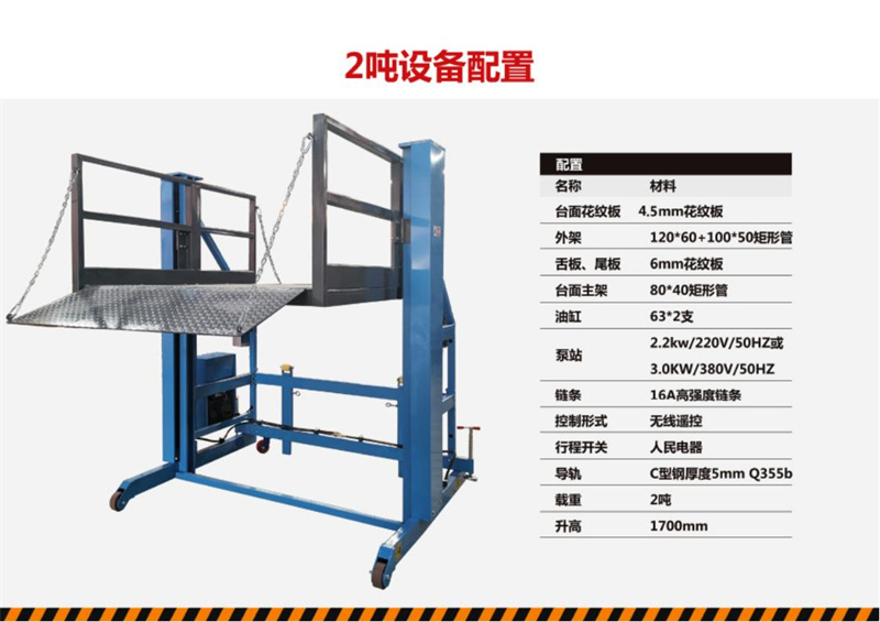 4.卸貨平臺底架下設有緩沖 橡膠墊,在平臺下降到地面時起到緩沖作用減小沖擊;